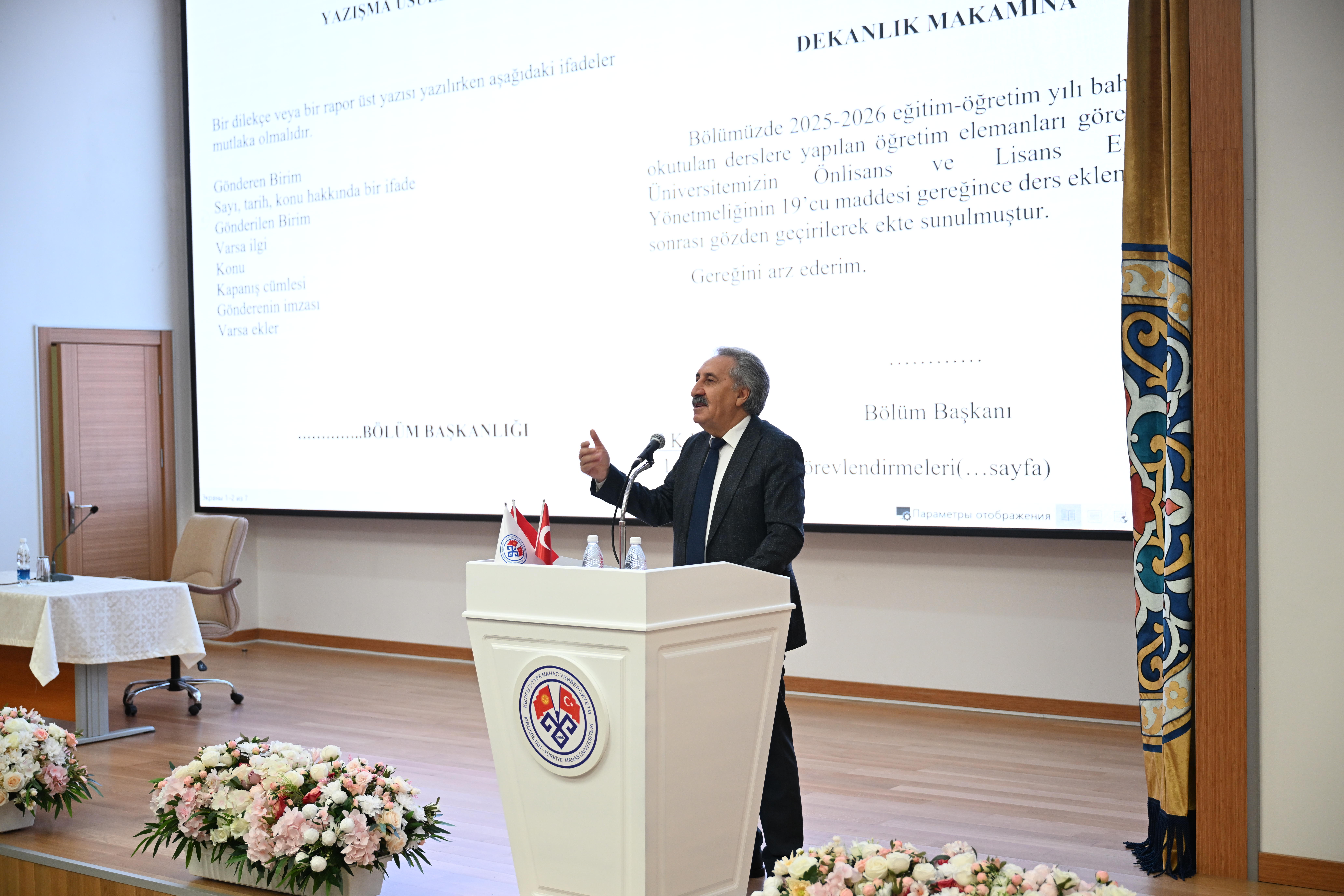 Eğitim, Maksat Inakbekov ve Bakıt İsmailov tarafından verildi. Program kapsamında resmi evrakların doğru sınıflandırılması, arşivleme süreçleri, dosyalama sistemleri, belge güvenliği ve kurumsal hafızanın korunmasına yönelik temel ilkeler ele alındı. Ayrıca uygulamada karşılaşılan sorunlar ve çözüm önerileri üzerinde durularak katılımcıların soruları yanıtlandı.